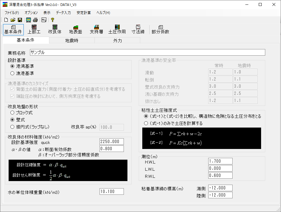 - 本システムはH30年港湾基準と2015年漁港基準に準拠しています。
